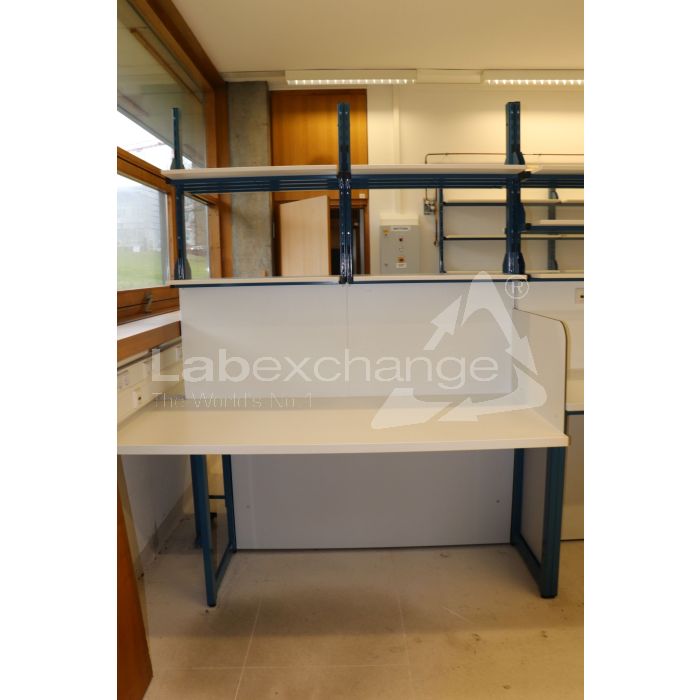 HxBxT: 4x190x79cm und je 4 Ablagen 80x34cm. Arbeitshöhe 78 cm.
