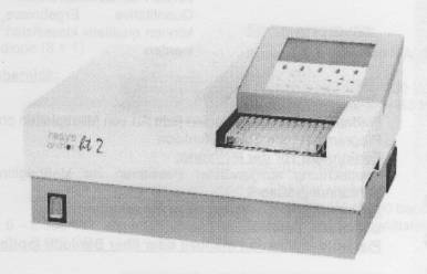 Automatisches Photometer für Mikrotestplatten mit integrierter, einstellbarer Schüttelfunktion, mit Plattenzentrierungssystem, mit automatischem Selbsttest, mit 8 Meßkanälen und 1 Referenzkanal, mit 35 separaten Messungen pro Kavität für Agglutinations- und Colorimetrische Messungen, Data Management Modul zum Speichern von Testergebnissen, Programmkapazität für 30 definierbare Auswerteprogramme, mit individueller oder automatischer Blankauswahl, Test- und Kontrollvalidierung, voll Computerkompatibel, Plattenlesegeschwindigkeit unter 5 Sekunden (Quick-Programm), mono- oder bichromatische Messungen, mit innovativer Scanner-Optik und PC-ähnlichem, graphikfähigem Display.