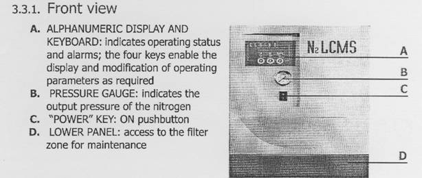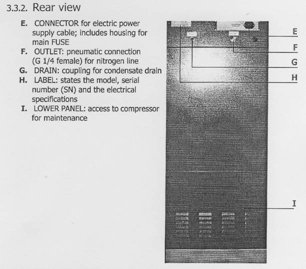 The degree of purity of the gas on output varies according to the type of use and application. The data regarding the present model are specified on the relative product datasheet.