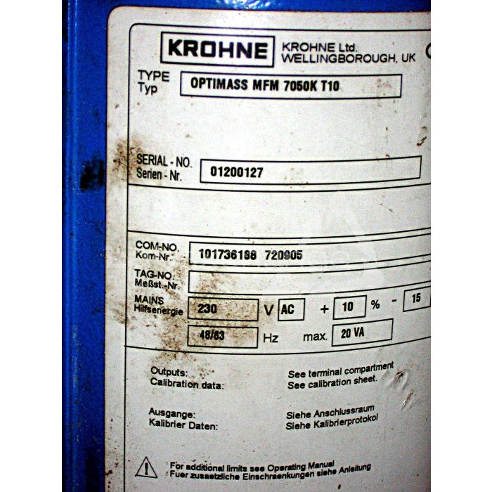 | Objektbezeichnung | Krohne MFM7050 T10 |