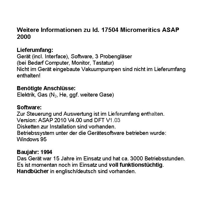 | Objektbezeichnung | Micromeritics ASAP 2000 |