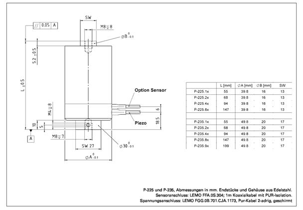 Vorgespannte Hochlast-Piezoaktoren (HVPZT) mit Sensoroption