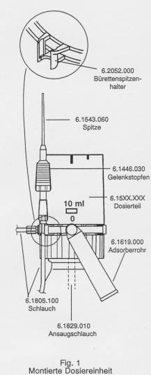 Adsorberrohr 6.1619.000 an Anschluss 0 des Dosierteils schrauben.