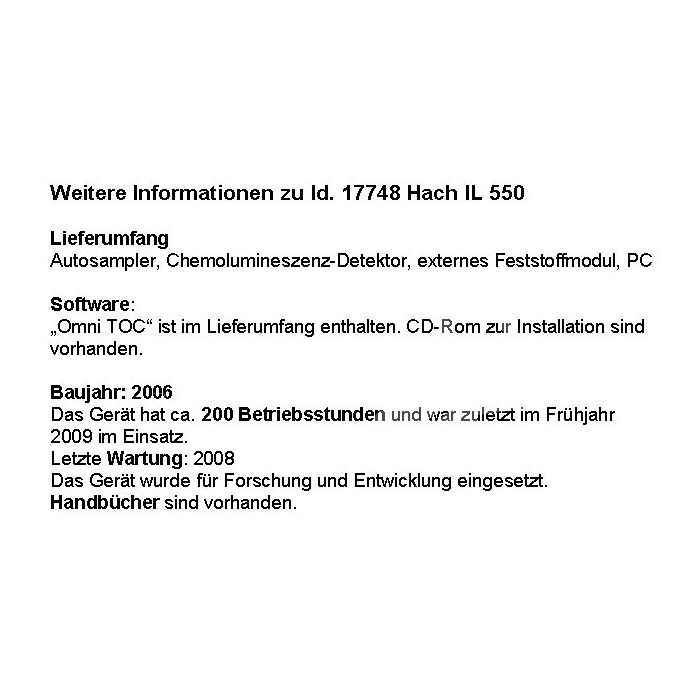 Verantwortlich für den Inhalt dieses Geräteangebotes ist die Labprocure GmbH als Geräteinserent. Labprocure übernimmt die Haftung für die hier inserierten Angebote und für die beinhalteten Fotos und Angebotstexte. Labprocure GmbH, Bruckstrasse 58, 72393 Burladingen. |