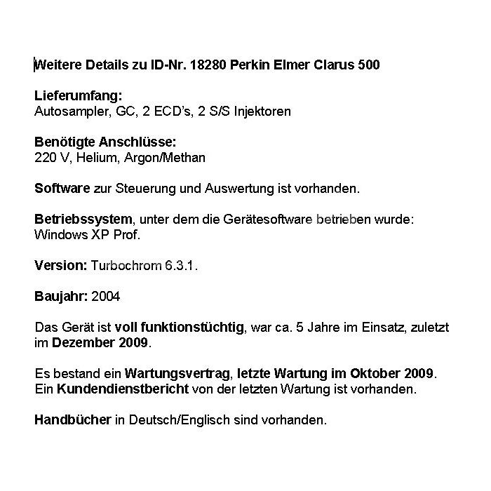 | Objektbezeichnung | Perkin Elmer Clarus 500 |