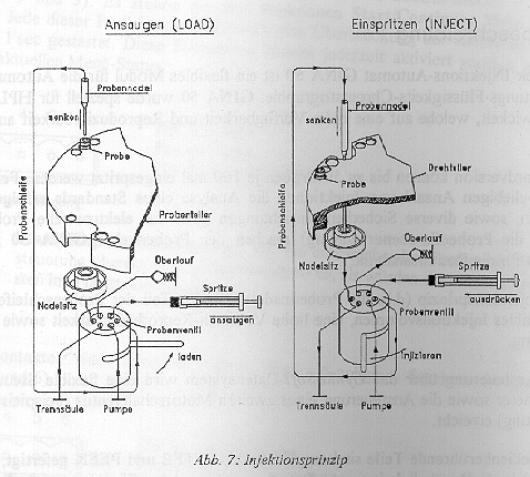 Das Injektionsprinzip beruht darauf, daß die Probennadel selbst Teil der Probenschleife ist:
