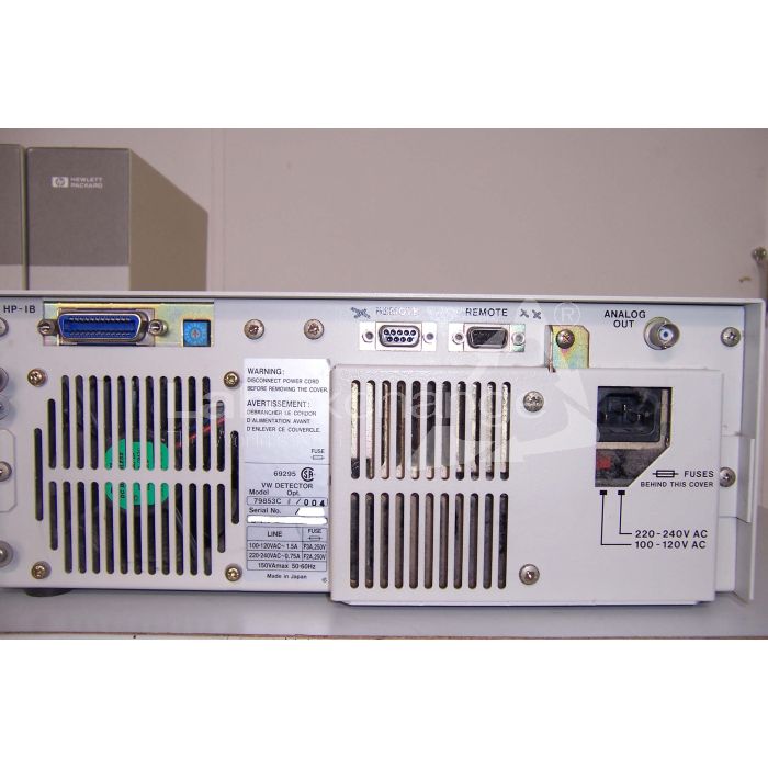 Hewlett Packard variabler Wellenlängen Detektor 1050. Modell 79853C. 220 V. 150 W. 190-600 nm. Analytische Standard-Messzelle. Max. 40 bar. HPIB-Interface. HPIB-Kabel. Bedienfeld. Display.