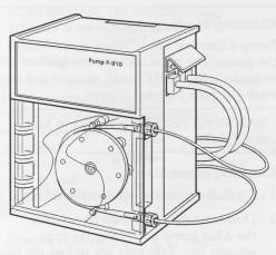 Pump P-910 is a single channel peristaltic laboratory pump for use as a sample pump to fill sample loops in an ÄKTAdesign chromatography system. Pumping action is provided by a roller cage driven by a stepper motor controlled from a PC running UNICORN control system, version 2.10 or higher.