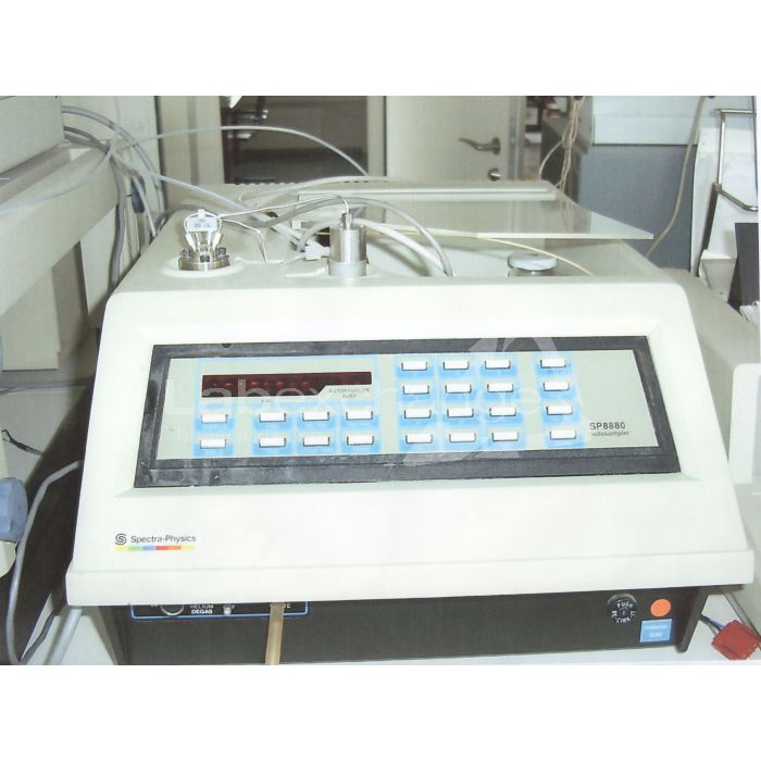 Spectra Physics HPLC-Anlage. Degasser Gastor 104. Pumpe SP 8800. Dynamic Mixer SP 8500. Wellenlängendetektor Spectra 200. Autosampler SP 8880. Integrator ChromJet.
