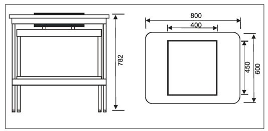 Gesamtabmessungen (B x T x H) 800 x 600 x 782 mm