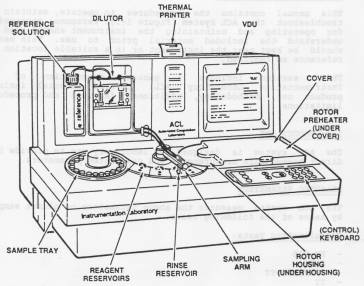 The ACL is a fully automatic microcomputer controlled microcentrifugal analyzer. The ACLTM system incorporates a video display unit (VDU) that continually displays the status of the Instrument and gives instructions on how to proceed.