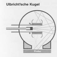 Messprinzip: Reflexionsmessung mit Ulbricht'scher Kugel nach dem Kompensationsprinzip über einen Referenzstrahl.