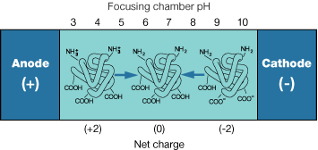 Proteins are amphoteric molecules, meaning they carry positive, negative, or neutral charges depending on the pH of their local environment. For every protein, there is a specific pH at which the net charge it carries is zero. This isoelectric pH value, termed the pI, is a physicochemical characteristic of every protein. It is the amphoteric nature of proteins and their characteristic pIs that allow their separation by IEF.