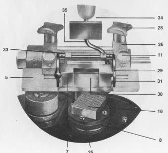 Vollverkleidetes Mikrotom mit Freiwinkelverstellung. Objekt- und Messerkühlung durch Kohlensäure oder elektrisches Kühlaggregat FRIGOMOBIL.