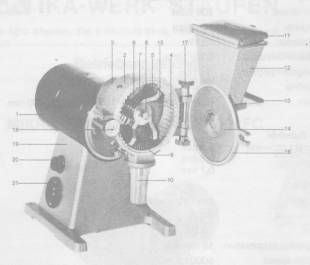 Diese kleine Mühle basiert auf dem Prinzip der Schlagmühle und ist speziell für jene Fälle konstruiert worden, wo es gilt, kleine Substanzmengen für analytischeZwecke in verschiedenen Körnungen zu mahlen. Dabei sind die Verluste am Mahlgut praktisch gleich Null, da die Mahlkammer sehr klein ist, die Tür mittels Gummidichtungen staubfrei schließt und die Auffangröhrchen luftdicht auf den Abfüllstutzen gesteckt werden können.