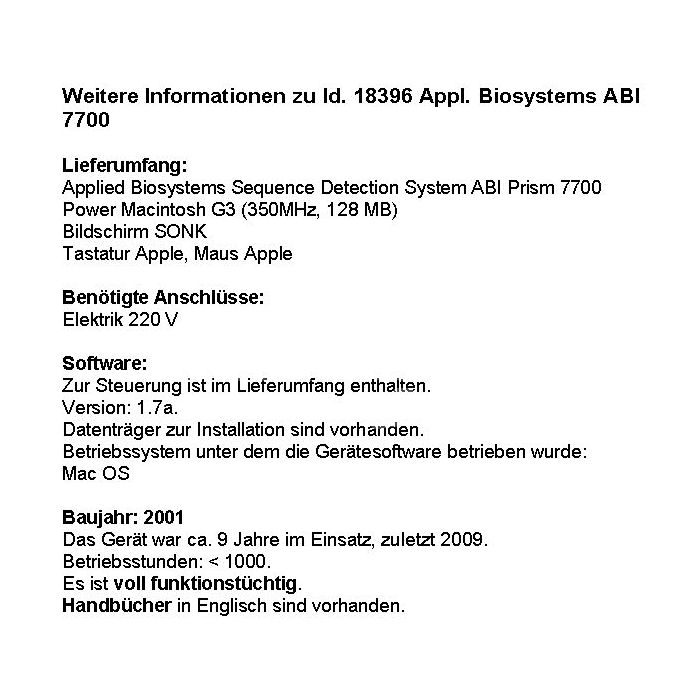 | Objektbezeichnung | Appl.Biosystems ABI 7700 |