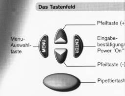 Das Gerät wird durch Betätigung der Enter-Taste eingeschaltet! Durch anschließendes Drücken der Pipettiertaste ist das Gerät pipettierbereit.