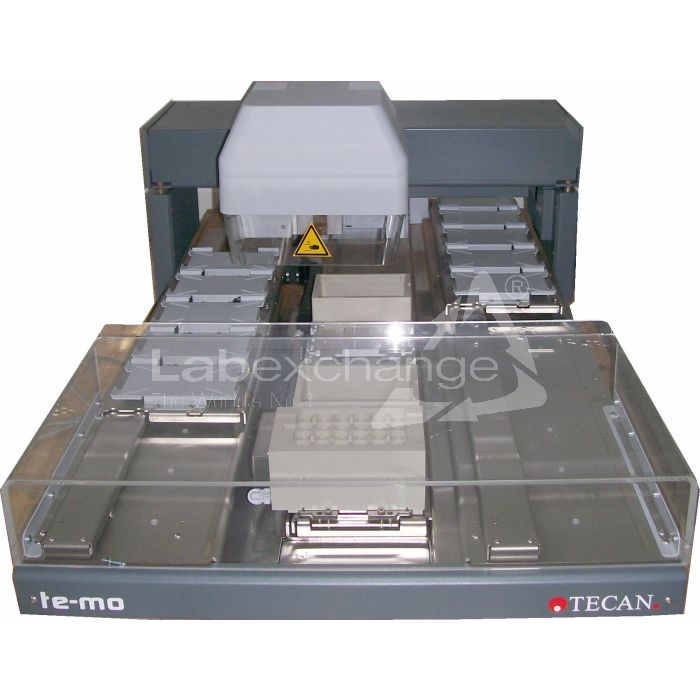 The Genesis Freedom is designed for automating routine laboratory tasks. The instrument consists of a platform (frame, housing, main electronic boards and power supply) that is available in three different sizes (approximate instrument length of 100, 150 or 200 cm). The platform may be placed onto a cabinet and can be equipped with maximally three robotic arms (two for size 100) in several combinations. The following robotic arms are available: