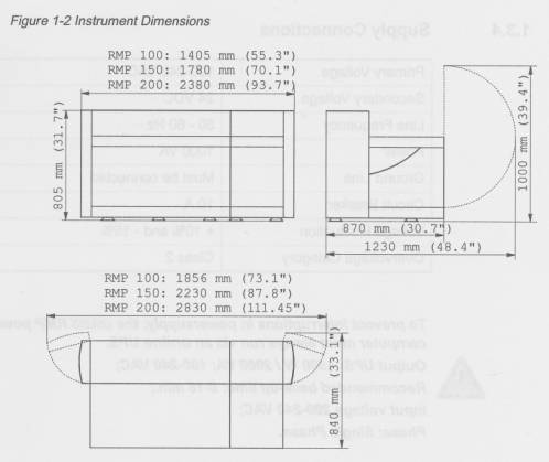 The GENESIS RMP is a Robotic Microplate Processor for ELISA (Enzyme Linked Immuno Sorbent Assay) and ELISA-like tests. lt is produced in three sizes (instrument width: 100, 150 and 200 cm respectively). lt is equipped with a Robotic Manipulator Arm (RoMa) and a Liquid Handling Arm (LiHa) with 4 or 8 tips. Furthermore, the GENESIS RMP contains a room temperature incubator, a heated incubator, a reader, a washer, a shelf for 4, 6, 8 or 12 microplates and a barcode reader (PosID). The access door is secured with doorlocks (see figure 1-1). Optional, the instrument can be equipped with a second room temperature incubator and/or heated incubator.