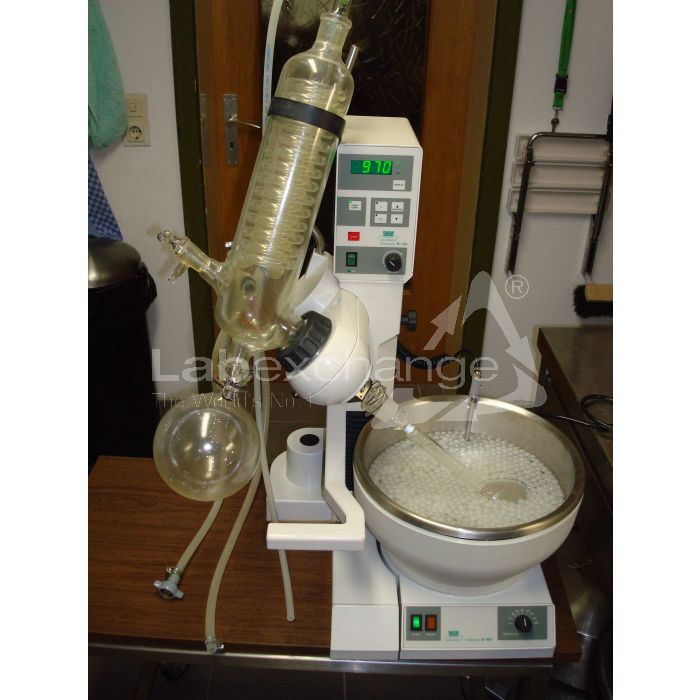 Büchi Rotationsverdampfer Rotavapor R-134. 230 V. 70 W. Digitalanzeige. Manueller Lift. Vertikalkühler. Büchi Wasserbad B-480. 100°C. 220V. 1300 W.