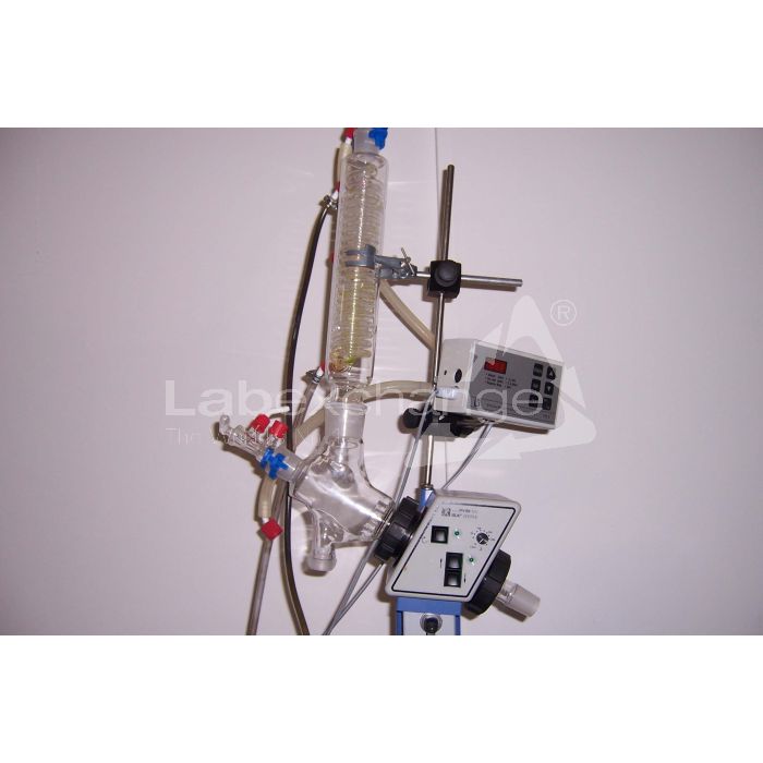 IKA Rotationsverdampfer RV 06-ML. Max. 200 U/min. Elektrisches Heben und Senken. Vertikalkühler. 220 V. 45 W. IKA Wasserbad HB 4. Max. 225 °C. 220 V. 1000 W. IKA Vakuumcontroller IKAVAC VC 2. Digitalanzeige. Vacuubrand Membranpumpe MZ 2C. Chemikalienbeständig. 220 V. 9 mbar. Max. 2.1 m³/h. Baujahr 2008. CE-Kennzeichnung.