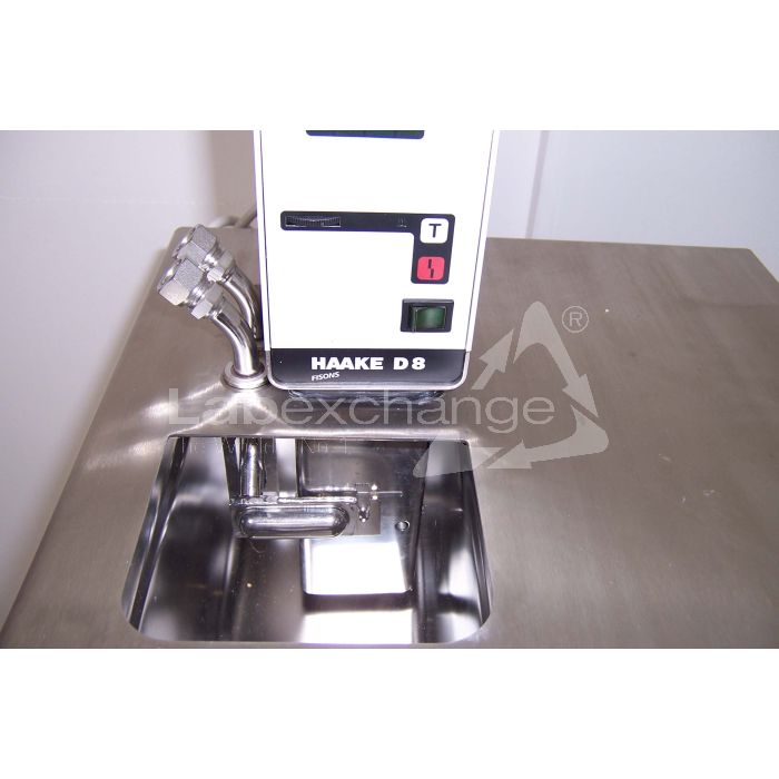 Haake Kühlthermostat D8-G. Inhalt 3 l. -15°/+150°C. Gestell für 18 Gläser Dia max 16mm. 230V. 1,5KW. Kälteleistung 20°C/200W. 150mbar. Max 12l/min Förderstrom. Kühlmittel R12. Unbenutzt. Neuwertig.