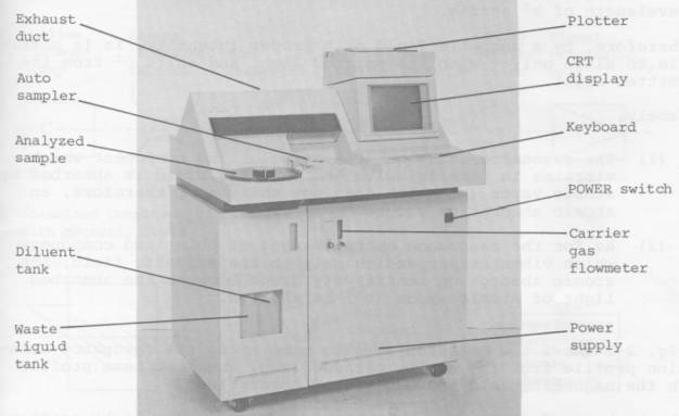 The instrument (Model Z-9000 Simultaneous Multielement Atomic Absorption Spectrophotometer) incorporates a spectrophotometric unit, controller, display, operating unit, graphic plotter, gas controller, atomizing unit, G. A. power supply and auto sampler.