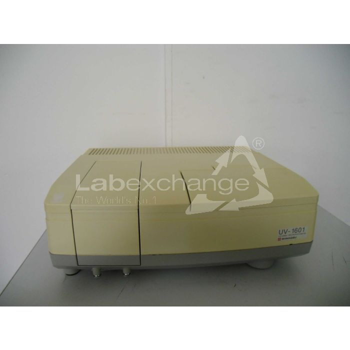 Shimadzu UV/Vis-Spektralphotometer UV-1601. 190-1100 nm. 100-120 V/230-240 V. 50/60 Hz. 160 W. Scanfunktion mit 160-3200 nm/min. Zweistrahlgerät. Küvettenhalter für 10x10 mm Küvetten. Bedienfeld. Display. Schnittstellen: RS232c und Centrino. Ohne IC-Card. CE-Zeichen.