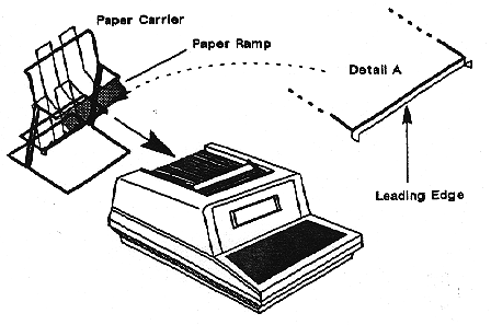 3) Feed leading sheet of paper from carrier over the rear into the integrator, inserting it until resistance is felt. Turn roller platen by hand until paper engages.