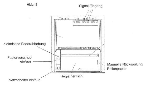 Diese Schreiber sind für kalibriertes Registrierpapier von 250 mm Schreibbreite ausgelegt. Das Registrierpapier wird durch einen quarzgesteuerten Schrittmotor angetrieben. Es können 14 verschiedene Geschwindigkeiten zwischen 2 cm/h und 1 cm/sec am Wahlschalter eingestellt werden.