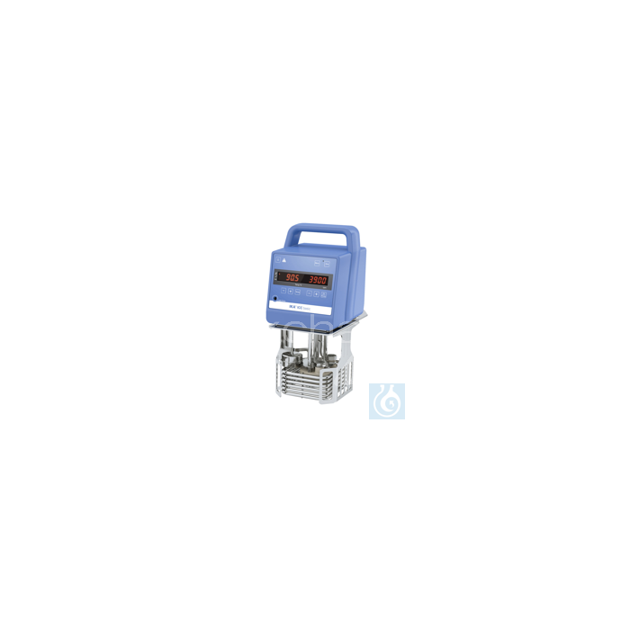 IKA ICC basic. Kompakter Einhängethermostat ICC basic zur Flüssigkeitstemperierung in offenen oder halb offenen. Badgefäßen bis zu einer Temperatur von 150 °C. Die integrierte Druck- und Saugpumpe ermöglicht die Verwendung für interne oder externe Applikationen. Optional kann zur Temperierung unter oder nahe der Umgebungstemperatur eine Kühlschlange an das Gerät angeschlossen werden. Das ICC ist der erste Thermostat seiner Klasse, der mittels des praktischen Tragegriffes bequem transportiert und durch den integrierten Standfuß sicher aufbewahrt werden kann. Temperaturbereich: RT. 150 °C. Temperaturkonstanz: ± 0, 02 K. Integrierte leistungsstarke und regulierbare Druck/Saugpumpe. Halteklammer zur Befestigung am. Badgefäß im Lieferumfang enthalten. Praktischer Tragegriff ud integrierter Standfuß. Temperatureinstellung und Pumpgeschwindigkeit werden über ein großes und gut ablesbares LED-Display angezeigt. Intuitive Menüführung über Druck- und Drehknöpfe. Einstellbarer Sicherheitskreis. Optische und akustische Warnfunktionen. USB / RS 232-Schnittstelle zur Steuerung und Überwachung der Geräte über labworldsoft® und zur online Aktualisierung der Gerätesoftware. NEUGERÄT. Herstellergarantie!