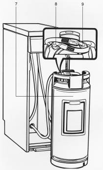 Zu 1. Die Patrone E 310 ist mit regenerierbaren Harzen gefüllt, die nach Erschöpfung aufbereitet (regeneriert) wer-den können. Zur Aufbereitung kann die gesamte Patrone an eine Regenerier-Station geschickt werden.