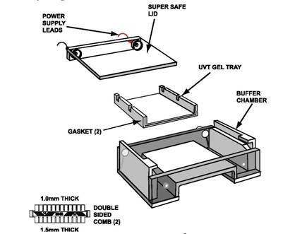 The Owl EasyCast TM Horizontal Minigel Systems, Models B1A, B1, and B2, are designed to provide flat, even banding patterns and consistent results with hassle-free gel casting. The all-in-one design allows you to cast and run gels in the same chamber, eliminating the need for additional casting equipment. No tape, grease, agarose seals or other accessories are required. All Easycast systems accommodate 2 comb positions, allowing the user to run 2 series of samples equal distances simultaneously. Convenient visualization strips have been added for easier sample loading; and fluorescent ruled UVT gel tray helps in the precise photodocumentation of each gel run. Three gel sizes are available for increased sample capacity and running length. Stand-alone casting platforms are available for pouring up to 3 gels simultaneously while the chamber is in use. Owl offers a wide variety of combs, including options that can double your sample capacity by doubling the number of sample wells, preparative combs, and wall combs to run gels in smaller sizes. Custom combs are also available.
