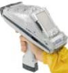 Die X-MET Batterien im Handgriff befindet. Um den Akku zu entfernen, drücken Sie den Schalter, und ziehen Sie, um die Batterie zu entfernen. Jede voll geladener Akku die X-MET etwa 4 Stunden zu arbeiten.