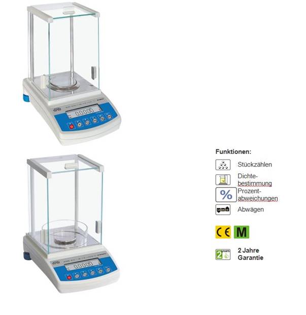 Analytische Waagen der WAS Serie werden in Wägebereichen 110, 160, 220, 310g mit Ablesbarkeit 0,1mg ausgeführt und 60g mit Ablesbarkeit 0,01 mg ausgeführt und 60/220g mit Ablesbarkeit 0,01/0,1 mg ausgeführt. Die Waagen mit Ablesbarkeit 0,01mg verfügen mit Möglichkeit von Pipetten Justierung und optional mit automatisch geöffnete Tür.