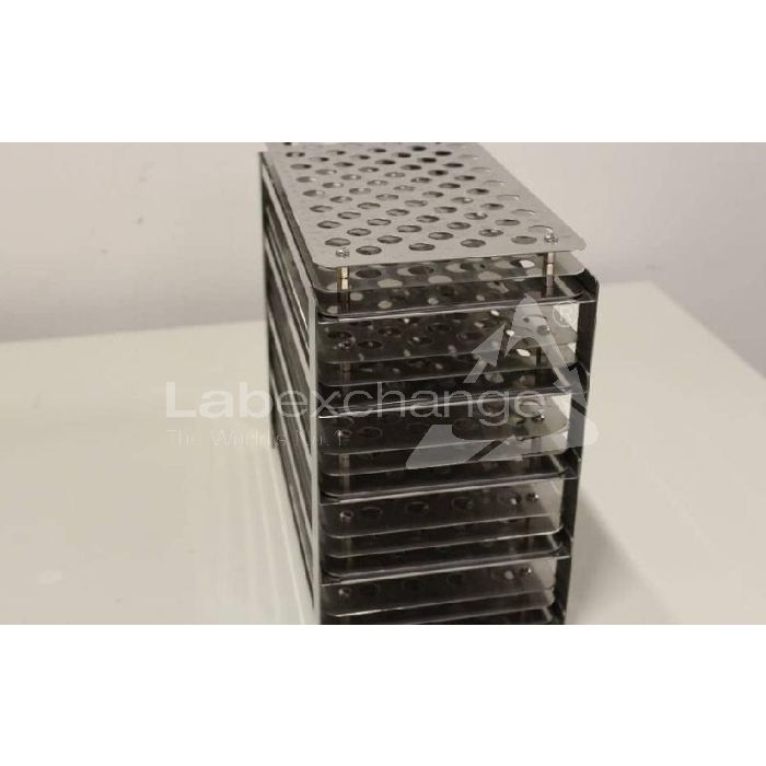 Inklusive Gestell mit 5 Tabletts mit jeweils 76 Löchern mit einem Durchmesser von 14mm und einer Höhe von 50mm