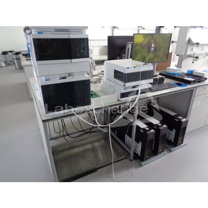 Agilent HPLC 1260 Infinity II. With: G7157A prep. autosampler. G7161A prep. binary pump. G3164E FC-PS. G7114A VWD. PC, monitor. Deuterium lamp. Agilent tool case. 1x UPS. Purchased in 2022. Seller assumes no liability for material defects. Warranty, technical functional testing, delivery, and installation are available as additional services through Labexchange for an additional charge.
