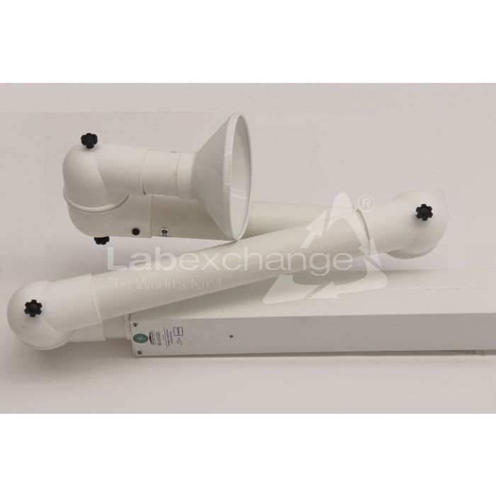 Alsident extraction arm with 3 joints height 408cm. diameter 80 mm. Length 158cm. Extraction bell Ø 21cm. Wall bracket with mounting plate WxD: 20x20cm.