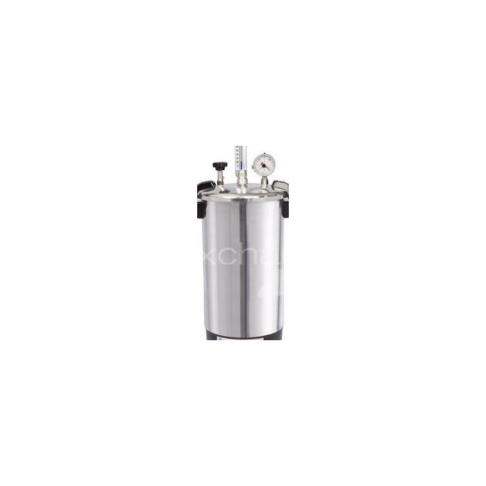 The CertoClav EL is a tabletop autoclave with thermostat control and has a volume of 18 liters. It is supplied with an instrument panel and a water level indicator. The interior has a diameter of 24 cm, a height of 39 cm and a diagonal of 46.5 cm. Technical specifications include an operating temperature or pressure of 125 °C at 1.4 bar for level 1 and 140 °C at 2.7 bar for level 2. In addition, there is a special valve for 115 °C at 0.7 bar and another for 121 °C at 1.2 bar. The heating power is 1900 W and the autoclave is connected to a power supply of 230 V ± 10% at 50-60 Hz. The test pressure is 4.1 bar and it includes an integrated heater as well as a precision thermometer and precision manometer. The venting process is carried out using the flow method. Areas of application include sterilization, preparation of culture media and waste sterilization. The items to be sterilized can consist of solid, even simply packaged instruments, liquids such as culture media, bottles, equipment and waste. The weight of the autoclave is 9 kg