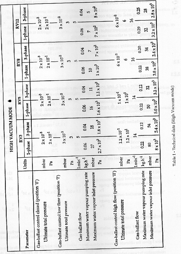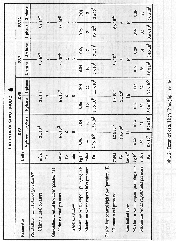 Air can be introduced to the low vacuum stage through the gas-ballast valve. Alternatively, an inert gas such as nitrogen can be supplied through a suitable extemal valve.