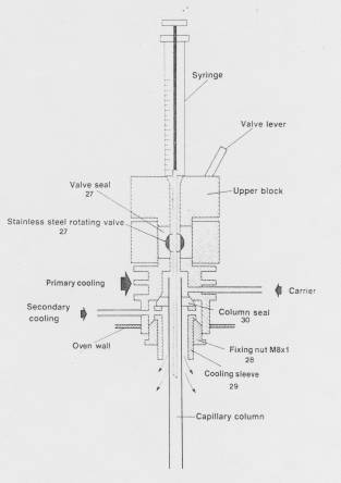 Substantially developed from Grob's original design, the Tatest Fisons Instruments oncolumn injector unit (OC-V 71) is shown schematically in fig 1.13.