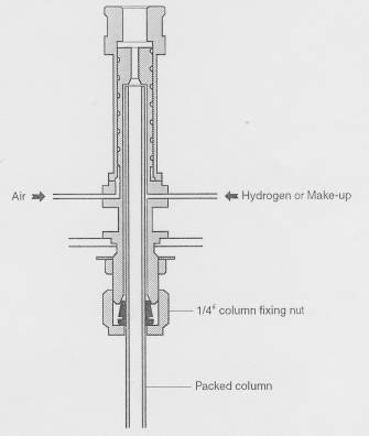 The packed column injector may also be modified to accept wide bore capillary columns.