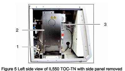 The IL530 TOC-TN and IL550 TOC-TN analyzers are compact tabletop instruments. The main components are permanently built into the basic analyzer. Accessories and reagents are connected or made available to the basic instrument for the purpose of performing tests.
