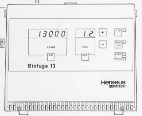 The microprocessor with the digital displays for speed, time and operating conditions (LED's) and the keys to adjust the parameters and to control the centrifuge are completely installed together with the power electronic behind the front panel.