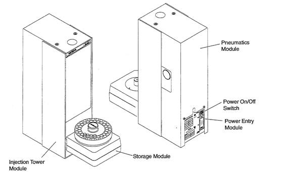 The 8200 CX AutoSampler is constructed of three modules: Storage Module,