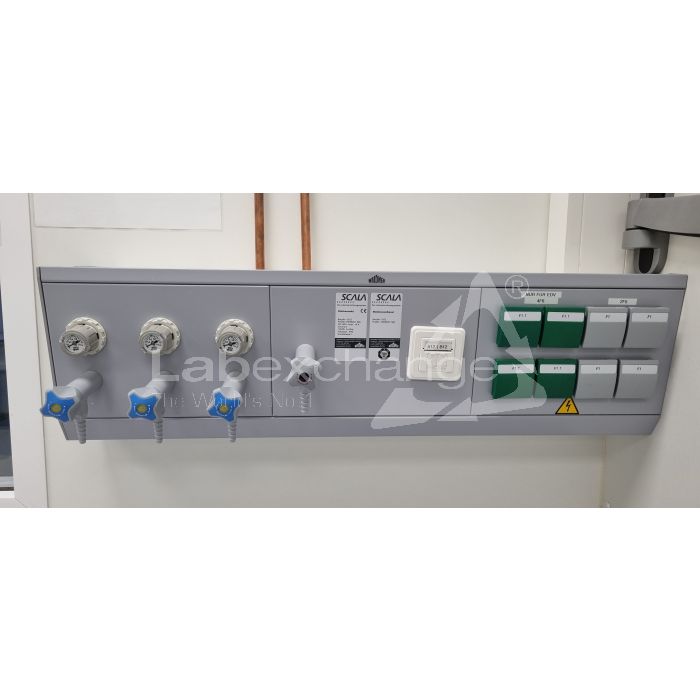 With 4x water taps. 3x pressure regulators. Power outlets.