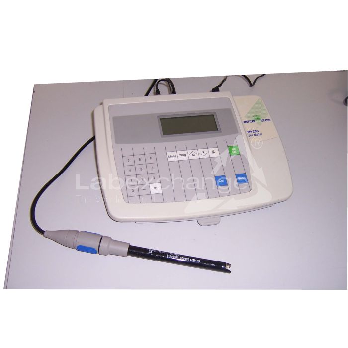 Mettler Toledo pH-mètre MP 230. 9 VDC. 0,3 W. Indication numerique. Transformator. Signe CE. L'électrode doit être commandée séparément.