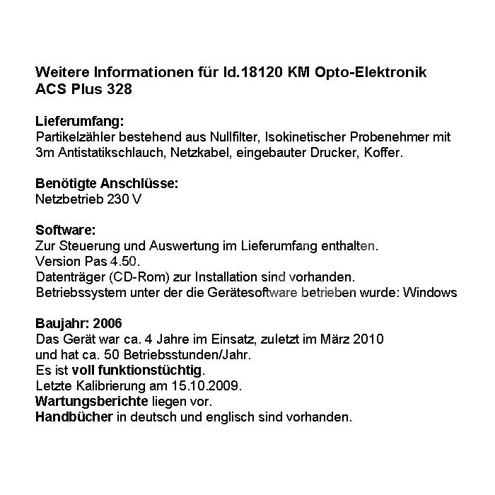 KM OptoElektronik Compteur les particules ACS-Plus 328. Avec valise. AC 2006