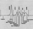 The Paragon CZE 2000 System separates the many proteins found in human serum into five classic zones. The resulting electropherogram is similar to a densitometric scan of a stained agarose gei; however, since CZE measures proteins directly at 214 nm, variation in dye absorption is eliminated.