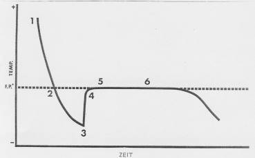 3) Si la jauge indique 3000, l'échantillon est assez surfusion. A 1 sec Rüttelimpuls secouer vigoureusement l'échantillon et il vient à la solidification.